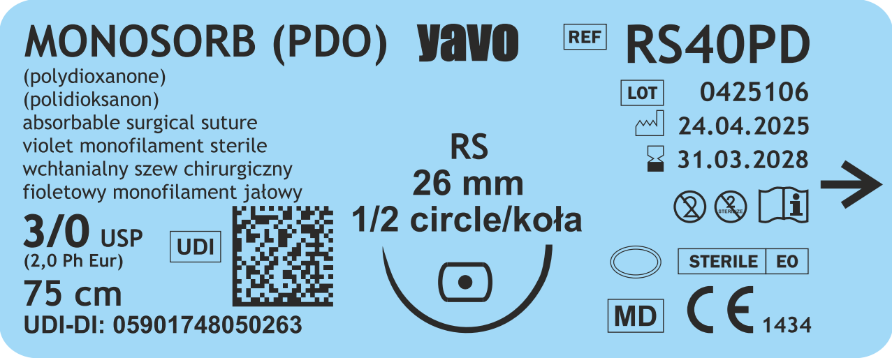 | Charakteristik | Syntetisches Nahtmaterial, kommt in ungefärbter (beige) oder gefärbtervioletter Form vor |