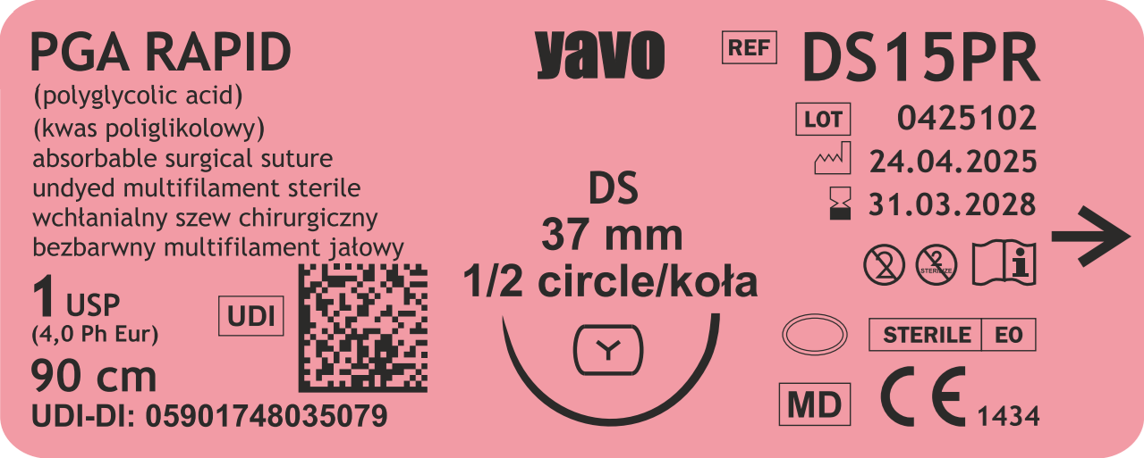 Breaking Strenght Retention/absorbtion | About 65% after 7 days from implantation About 50% after 8-11 days from implantation Complete absorption after 42 days |